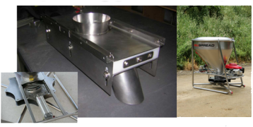 The HeliSpread system is designed to handle all types of spreading from seed , fertilizers, poison baits to mosquito larvacide. Often, a 60 metre swath width is obtainable along with an adjustable application rate. Discharge and application rates per model are available on request as is GPS tracking and data recording for these systems.