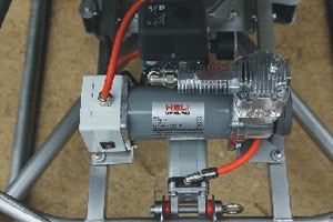The Helispread system uses high quality and readily available commercial air cooled compressors fitted complete with a control box available in 12 or 24v drawing on average 12-13 amps from the aircraft when in use.